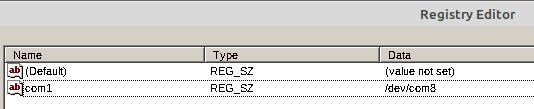 Navigate to /HKEY_Local_Machine/Software/Wine/Ports and add a new string called com1.