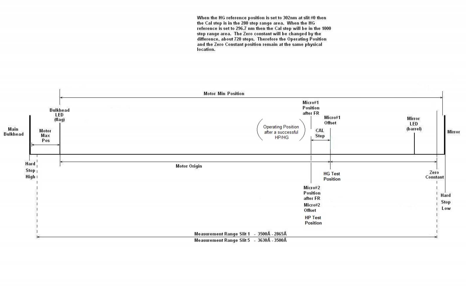 ¹The Brewer MKIII Operators Manual, Appendix H, motor positions for instrument control table, describes micrometer movement as” 576 steps/mm - wavelength change of 0.0065 nm/step (positive steps increase wavelength and decrease micrometer setting) . The above example is in angstroms: 0.0065 nm/step equals 0.065 angstroms / step